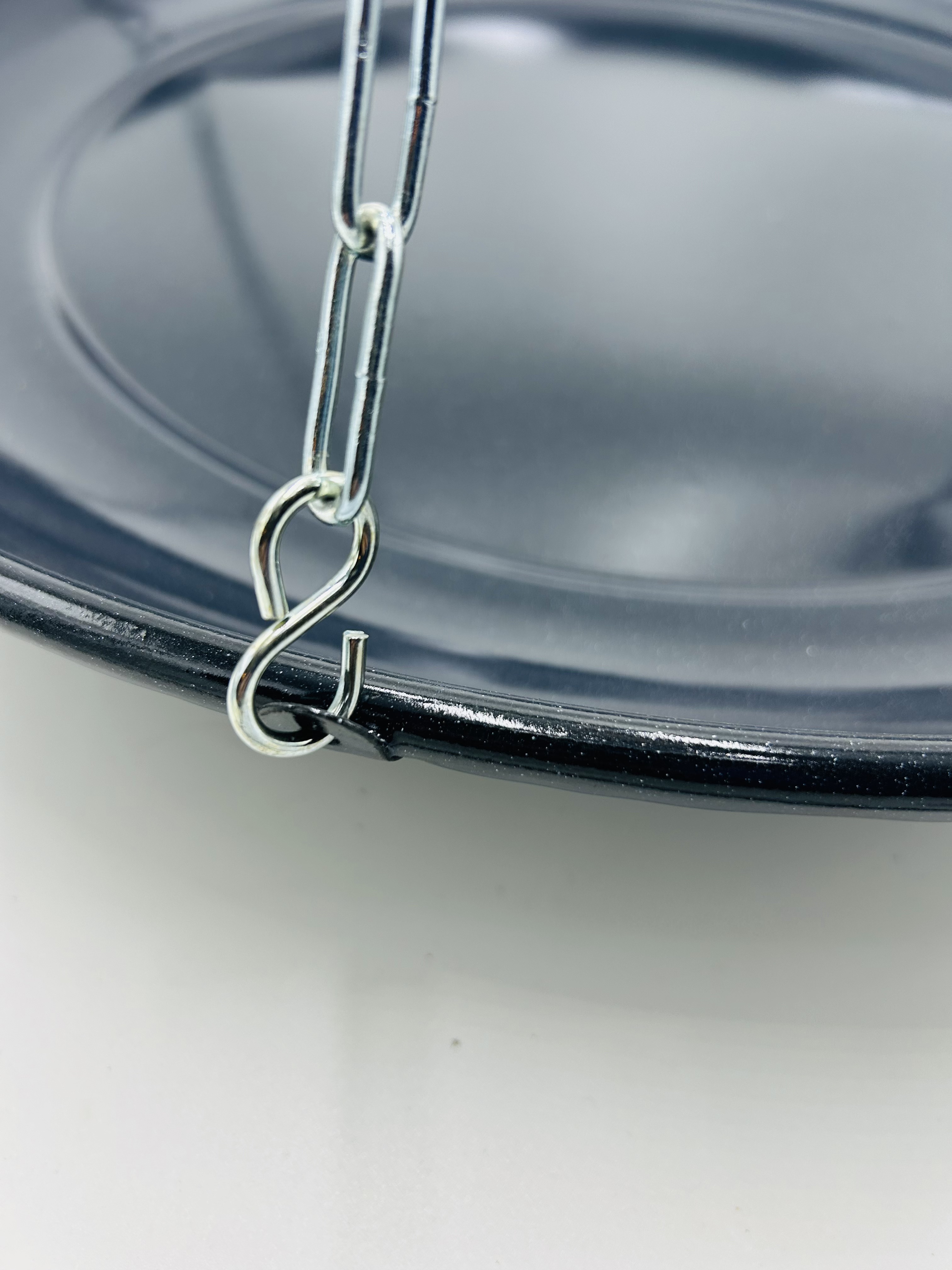 Mit seinem Durchmesser von 58 cm ist es möglich, gleich das ganze Lager oder den ganzen Garten voller Freunde mit Grillfleisch zu versorgen. Der erhöhte Rand verhindert das Runterfallen von Lebensmitteln. Natürlich wird die Metallkette um das befestigen an dem Dreibein zu ermöglichen mitgeliefert.